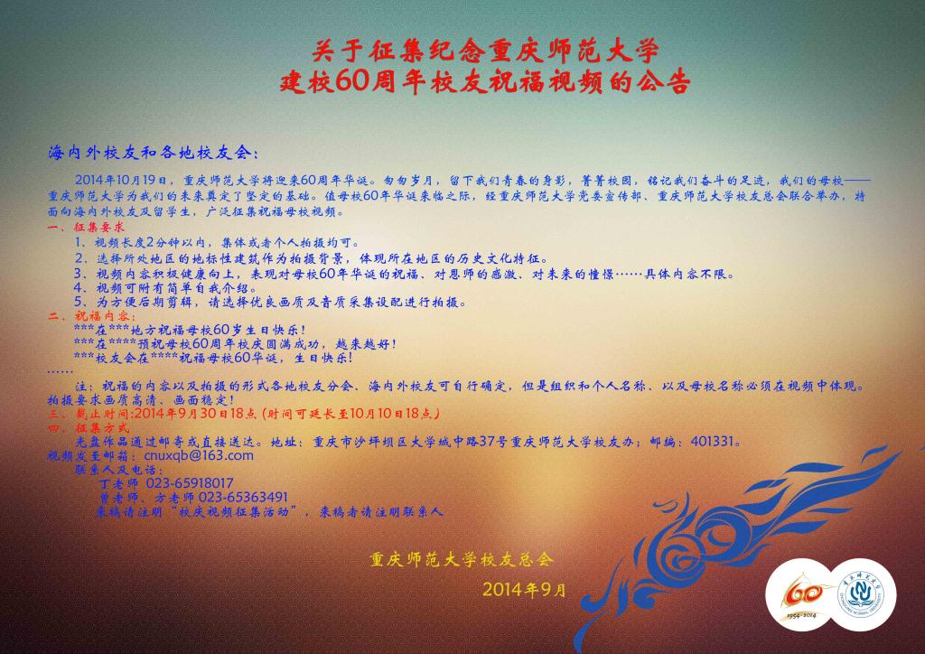 10月征集老虎机 60周年校庆校友祝福视频公告
