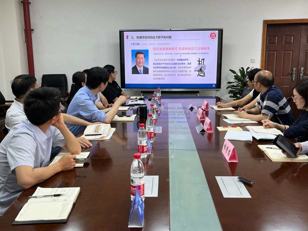 副院长余鹏结合物理学学科特色,以“中国式现代化建设中面临的卡脖子问题的物理学科回应”为主题进行了报告,详细讲解了我国现代化建设进程中至关重要的“卡脖子”问题以及其中的物理学难题,对通过科技革命、技术创新对如何解决“卡脖子”问题进行展望。