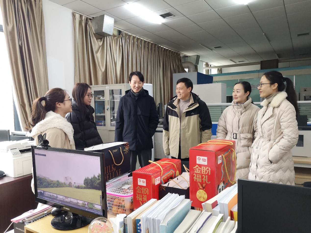 党委书记杨云,副院长(主持工作)余鹏,党委副书记曾艳,副院长张丁可一行,来到物电老虎机