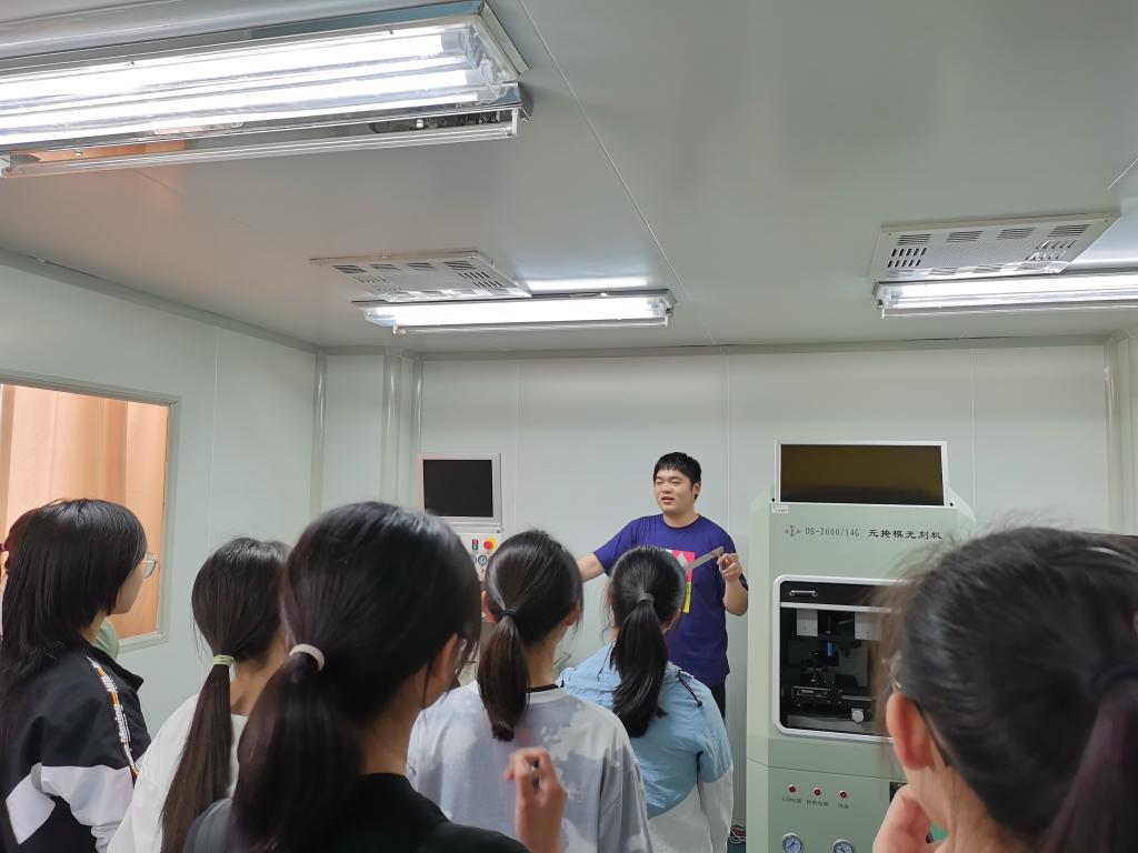 光电功能材料重庆市重点实验室主任余鹏教授对大一中师生一行的来访表示欢迎,随后向同学们介绍了实验室的科研方向和主要科研成果。接着同学们有序地对各个实验室进行了参观,并体验了部分实验过程。一踏进实验室的门,同学们立刻被各式各样的实验器材吸引,研究生讲解员耐心地为同学们介绍实验室的各项实验仪器与具体操作流程,期间同学们积极提问,现场氛围活跃。