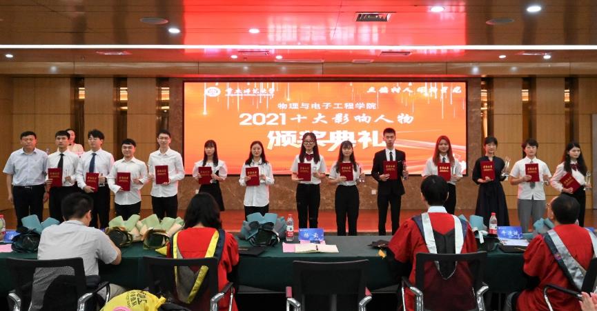 2021年“十大影响人物”荣誉称号的同学们颁发了奖状和奖杯。接着毕业生们观看了2022届毕业生毕业纪念视频,回忆了大学四年的点点滴滴。