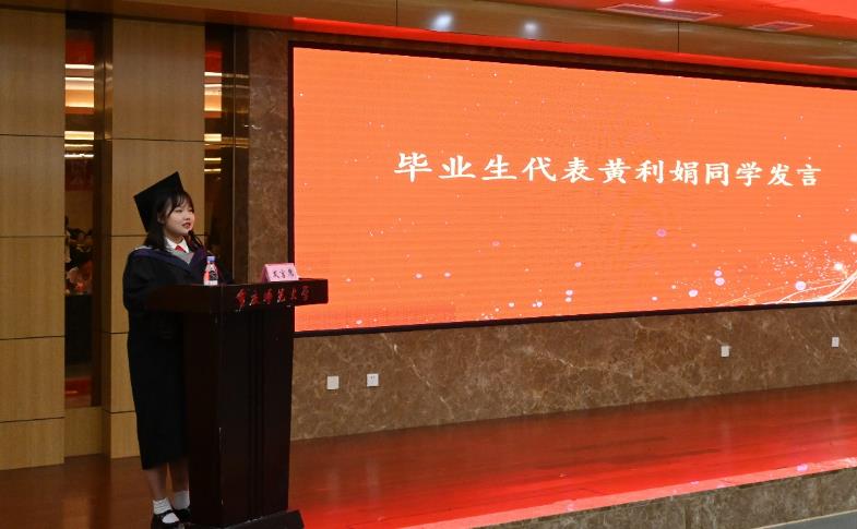 毕业生代表黄丽娟同学发言。她表达了对老虎机