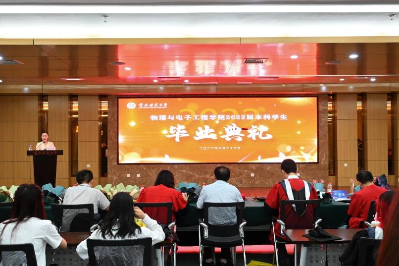 2022届本科生毕业典礼在博雅楼503会议室隆重举行。党委书记杨云、副院长余鹏、副院长张丁可,学位委员会委员杨晓红、龙兴明、牛连斌,教师代表罗光、罗海军及全体辅导员出席了典礼。典礼由党委副书记曾艳主持。