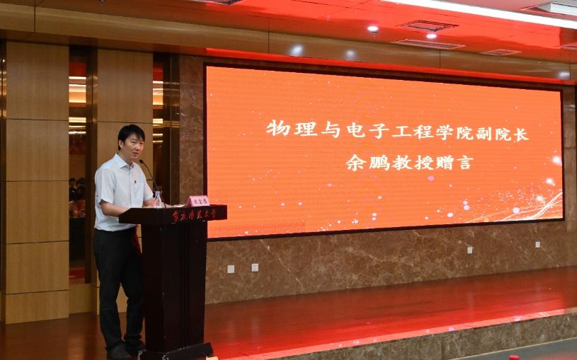 最后,副院长余鹏教授上台致辞。他充分肯定了2022届毕业生在校期间取得的成绩,对同学们顺利毕业表示祝贺,希望同学们以后在不同的岗位上延续物电精神,珍藏师生情、同学谊,常回母校看看。