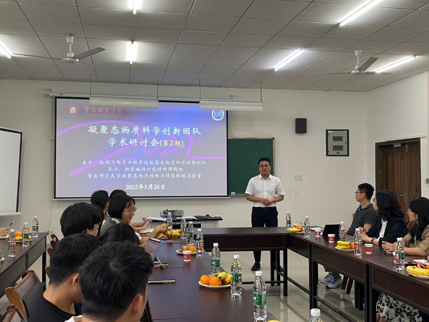凝聚态物质科学创新团队在第一期研讨会的基础之上,于2022年5月26日在物电实验楼210室举行学术沙龙(第二期研讨会)。本次会议由凝聚态物质科学创新团队主办,新型磁性功能材料课题组和凝聚态物质结构与性能控制实验室联合承办。