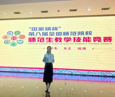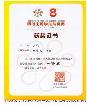 参加本次师范生教学技能竞赛决赛。经过激烈角逐,罗昳同学斩获物理组全国第二名,获得一等奖,这是物电学子再次在该比赛中获得全国一等奖。