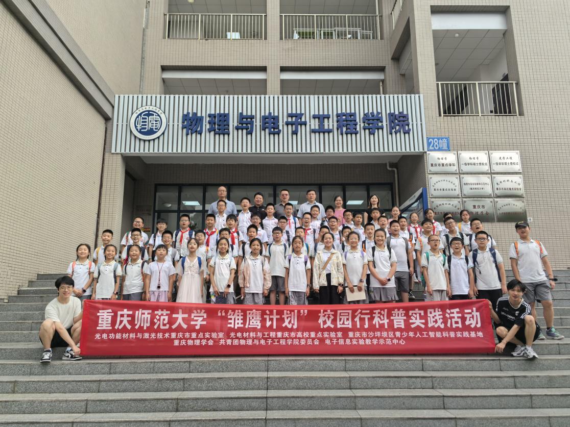 举办“雏鹰计划”校园行科普实践活动,来自重庆两江新区重光小学、重庆市大渡口区钰鑫小学的学生参与,开启奇妙科学之旅,激发小学生科学兴趣,普及科学知识。本次活动由光电功能材料与激光技术重庆市重点实验室、光电材料与工程重庆市高校重点实验室、重庆市沙坪坝区人工智能科普实践基地、重庆物理学会、电子信息实验教学示范中心、共青团老虎机