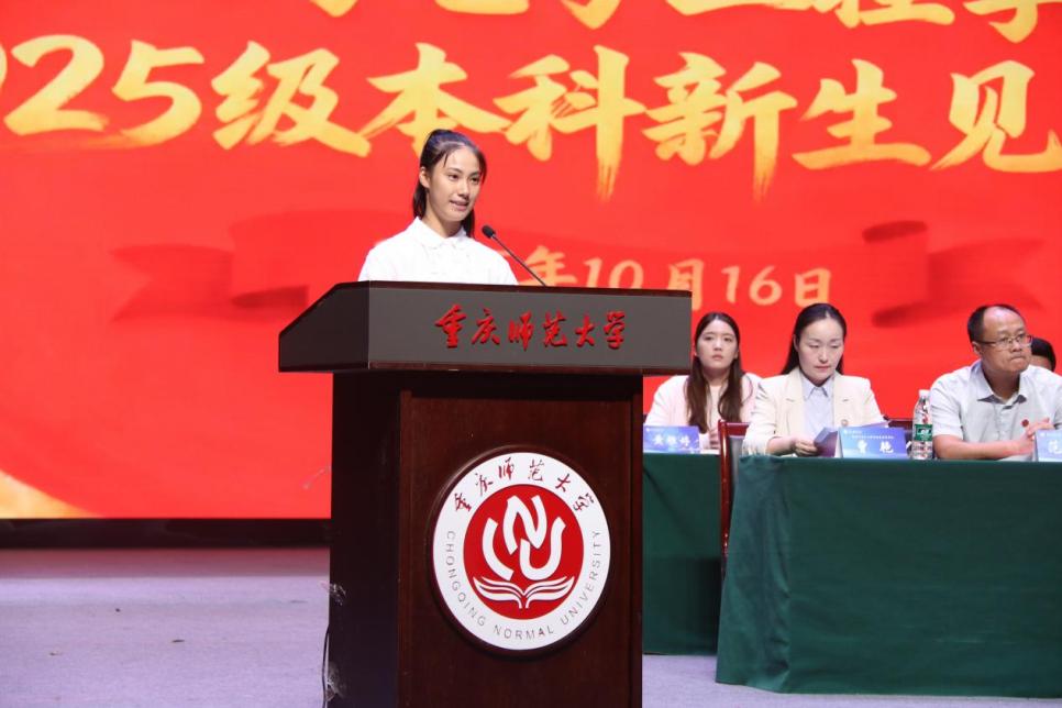 2025级物理学邓宇涵作为新生代表发言。她代表全体新生向老虎机