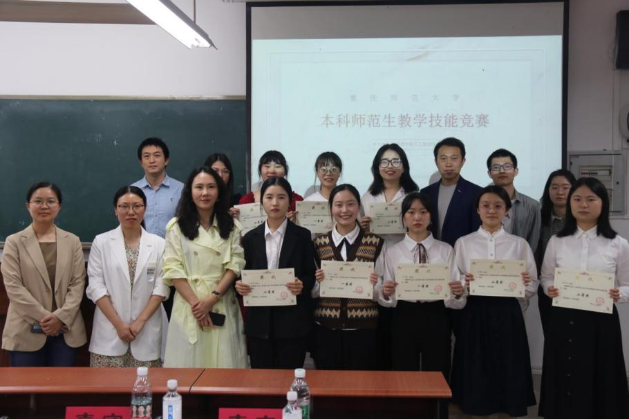 随后,郭章渊老师进行点评。他提到了以下三个方面:课堂引入的方式,教师应具备的能力,以及对即将入职或刚入职的大学生的几点建议。比赛结束后,在场的工作人员收取评委老师们的打分表后开始统分。随后,主持人宣布比赛结果。历经一个上午的角逐后,选手罗昳,许源,王涵获得了一等奖,选手曹娜娜、周贵旭、郭佑雪、向淏楠、钟菁菁、梁珂获得二等奖。评委老师为获奖选手们颁发了荣誉证书。