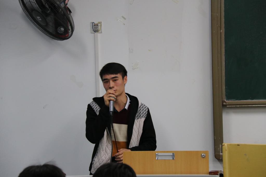 16级电子信息科学与技术(职教)专业的张承全上台发言。曾在电子科技大赛中多次取得佳绩的他,向同学们讲述了自己参赛的经历并分享经验。他就罗海军老师强调的学会自主上网查资料这一方面展开说明,并告诉同学们应学会利用资料将前辈的知识变成自己的知识,同时强调要培养团结协作的意识,向所有参赛学员表达了祝愿。