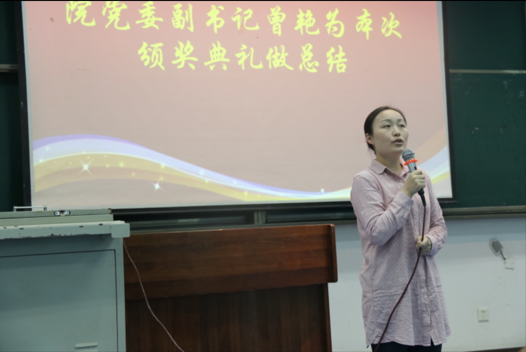 党委副书记曾艳为本次颁奖典礼做总结。各位物电学子取得了优异的成绩,首先要感谢自己,感谢自己的努力,感谢周围的人,感谢他们的帮助与支持。只要实力到了一定的高度,一点小失误是不会影响结果的。还有重要的两点,任何时候,态度决定高度,细节决定成败。到此,五四表彰暨运动会总结大会圆满结束。
