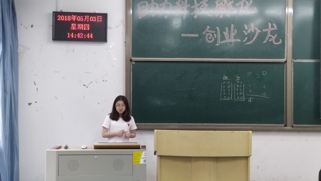 下午2:30,活动正式开始,参赛团队利用ppt演讲进行项目展示,将自己项目的方案、策划、融资和发展方向清晰地展示给大家。其中的项目类型也可谓种类繁多,有文化创造类,有商业服务类,还有科技创新类……无不体现出同学们的创业智慧与才能。