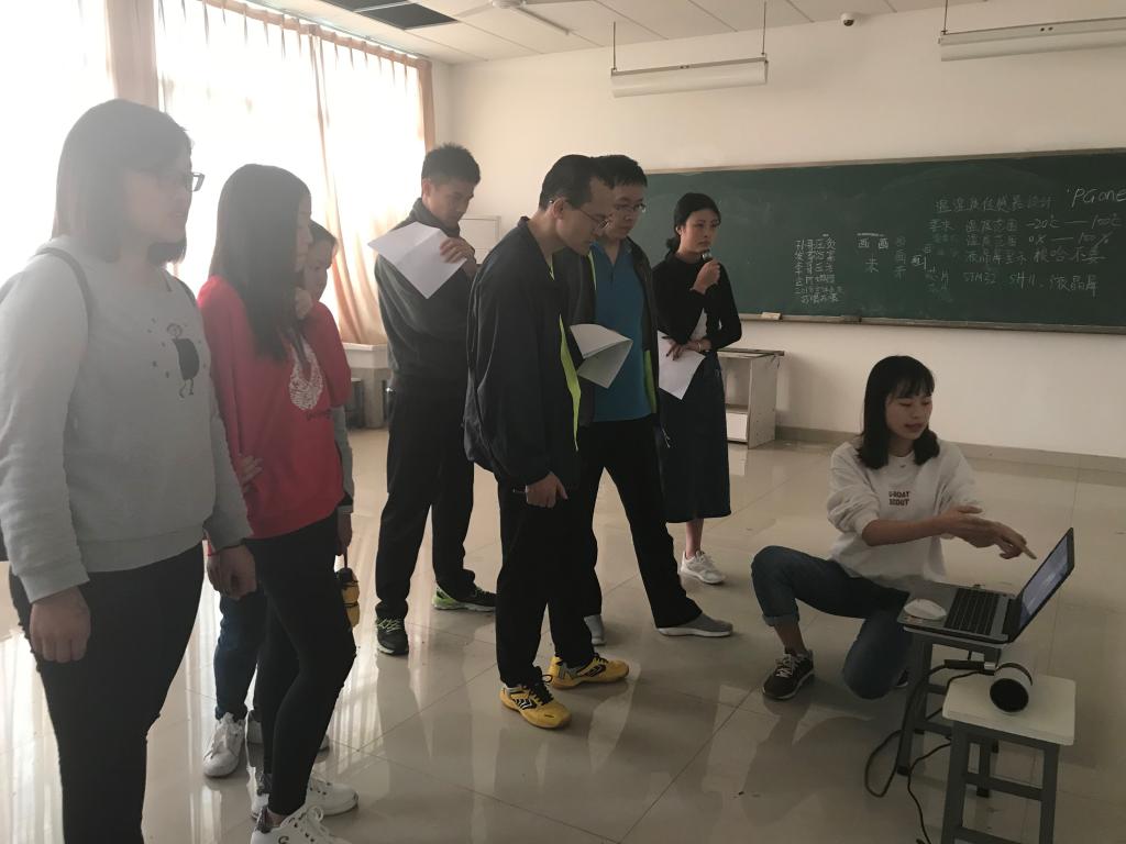 在这紧张的气氛下,同学们迎来了决赛日。4月26日下午1:30,决赛开始的钟声敲响。小组按顺序向评委及观众展示装置。部分同学因装置不便携带,从而选择了拍摄视频的方式参赛;而另一部分同学则选择现场展示装置。