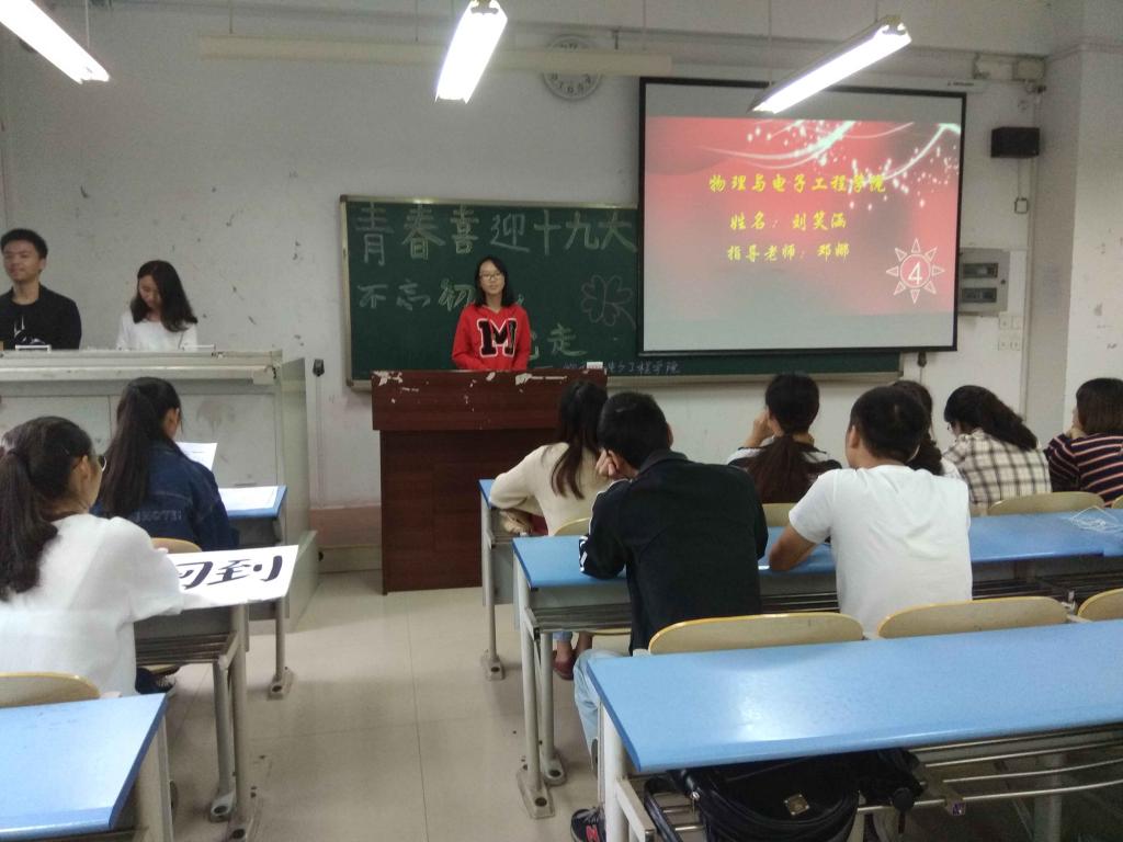 的校园文化结合起来进而发表自己的看法,深刻且富有内涵。充分表明了在党的英明指导下,人民在走向更加光明的道路上。最后,在非常激烈的竞争状态下,以及观众的热烈鼓掌下,物理系师范学生刘笑涵同学勇夺第一。