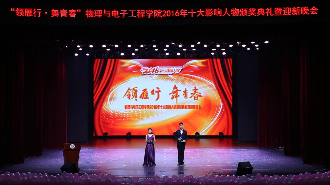 坚持“引领学生、服务学生、成就学生”的工作理念,组织开展了以“领雁行·舞青春”为主题的2016年十大影响人物的颁奖典礼。颁奖典礼于2016年12月25日18:30分在校友会堂隆重举行。老虎机