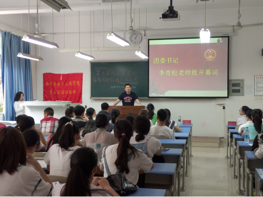 仪式在激昂的共产主义青年团团歌中拉开了帷幕,在团总支书记李青松为青马初级班的同学们简明地介绍了“青马工程”的背景以及该工程的意义之后,他告诫同学们:“我国在党的领导下,坚定不移地走中国特色社会主义道路,取得了一系列的丰硕成果,实践证明,党的领导是正确的。而作为青马学员,要坚定不移的跟党走,努力用马克思主义中国化的最新成果武装自己。”