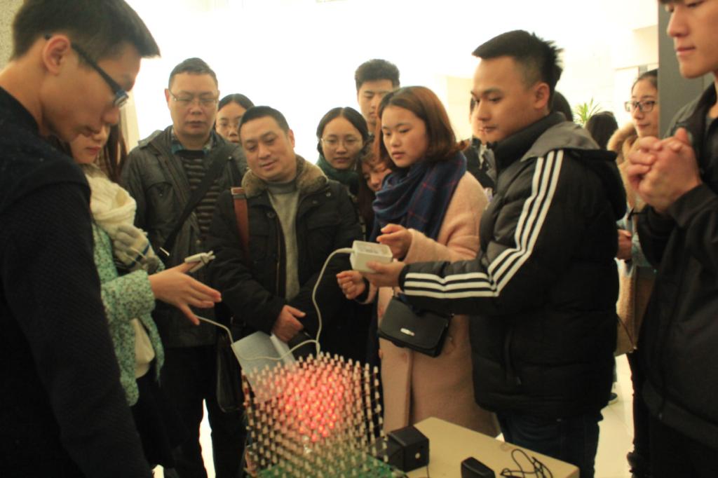 的参展选手都早早到场为展示作品做准备,参评的专家评委也在随后陆续到场,本次作品展示还吸引了一批感兴趣的老师和同学来到现场观看。