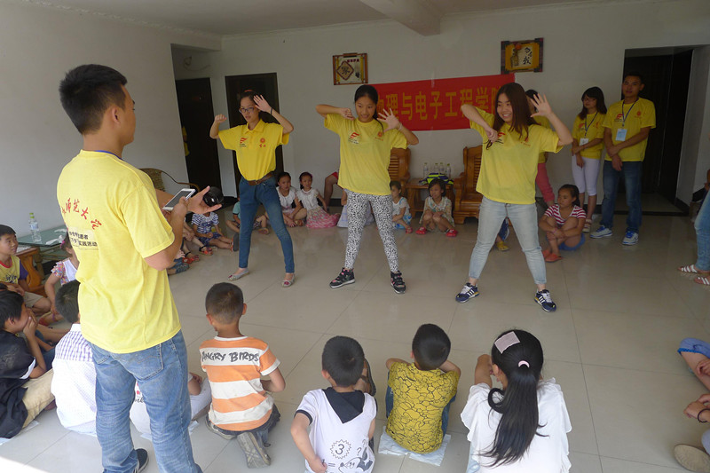 “心手相牵,筑梦齐飞”暑期“三下乡”社会实践服务团的40名大学生志愿者自觉承担起时代与社会赋予的责任,在乡村临时教室中创建“趣味课堂”,将对重庆万盛区黑山镇北山村的教育帮扶工作进行到底。