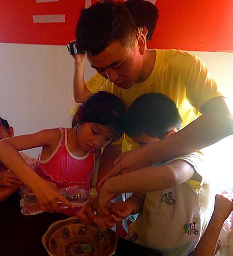 一个简单的单词,让北门村的孩子们迅速爱上了一种名叫英语的语言。志愿者们将爱注入到“英语泡泡堂”的缤纷世界中,不管是“mum”、“dad”,还是“apple”、“watermelon”,通过小老师精心编排的英语学习舞蹈和事先准备好的画有各种水果的彩色图片,小朋友们在简单的学习过后,深深地爱上了“爱心家教”班别出心裁的教学课堂和别具一格的新知识。