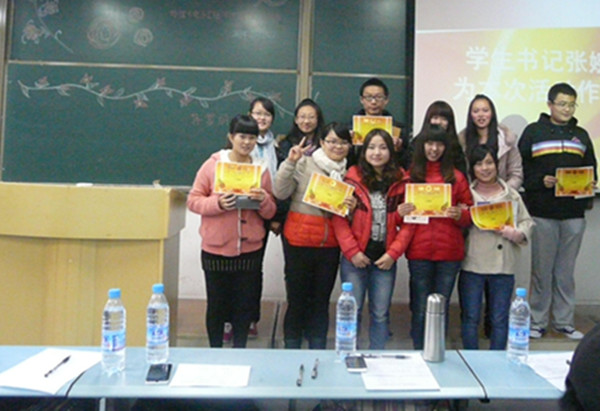 学生书记张婉君、宣传部部长谭欣以及学生会的其他干部。