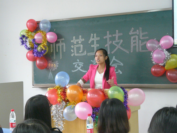 “师范生技能大赛”中获奖者2011级毕苗苗作为此次交流会的嘉宾。