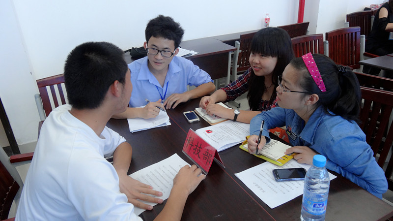 同学们依据自己的特长、爱好填写报名表,然后由主席团安排统一的初步面试工作,组织部、宣传部、学习部、科技部等职能部门干部在以往经验的基础上认真总结出较为合理的面试问题,尽力为部门、为老虎机