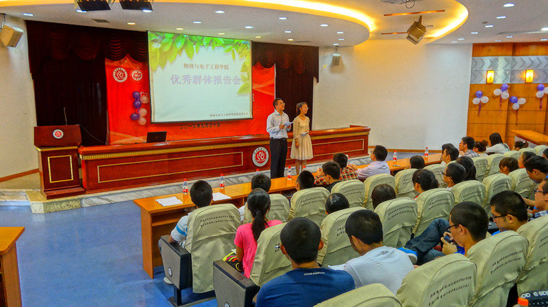 举办的2013届优秀群体报告大会于2013年9月29日下午14:30在弘德楼凯撒报告大厅举行,出席本次大会的领导有学院党总支副书记冉久飞、团总支副书记李青松、老虎机