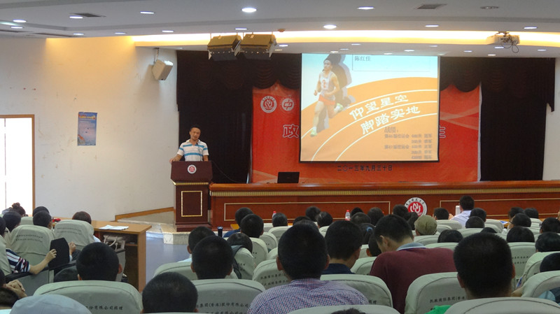 陈红佳学长以自己幽默诙谐的语言告诉大家,大学的学习生活不是只可以搞好课堂上的书本知识学习,还有自我的兴趣培养,身体锻炼的重要性等;一身书生气息的宋盼学长则强调了在大学里书是任何时候都可以依赖的好朋友。读好书可以丰富自我、锻炼自我认真谨慎的态度;帅气的林冰川学长则告诉了大家,只要大家努力,就可以找得到属于自己的天空,然后在自己的天空里发光发亮;文质彬彬的黎远望讲述了自己大一创业的艰辛路,虽然一路坎坷,但最终获得了让自己满意的结果。他告诉同学们大学生活里要有一颗敢做敢创的心;杨川峰学长,简单地陈述了自己大学三年里所走过的最让自己辉煌的路途。一个个荣誉是给予他向前的动力,他强调大学应该生活得轰轰烈烈;美丽大方的陈小雨学姐,则以真诚的心告诉大家,大学的优秀是靠努力得来的、是靠汗水和在不断的失败中站起来的勇气所积累出来的;12级的卓雅婷学姐则告诉了新的学弟学妹们向前冲的动力和希望,并给予他们鼓励和支持。她说,大学就是要做自己想做的事,让自己的青春疯一回;清新大方的团总支学生书记张婉君并向大家简单地介绍了学生会这个大家庭,与大家分享作为优秀学生干部的成功经验。