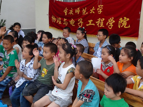 青春的力量不容小觑,经过良好的宣传工作,以及志愿者们与大木乡村民们心与心的交流,活动进行得很顺利,小朋友们的队伍也在逐渐的壮大起来,志愿者们精心的布置使小院中充满了温馨的气氛。志愿者们一颗颗火红的爱心,青春的脉动正在努力的诠释着物电的教育帮扶并不是一句空话。
