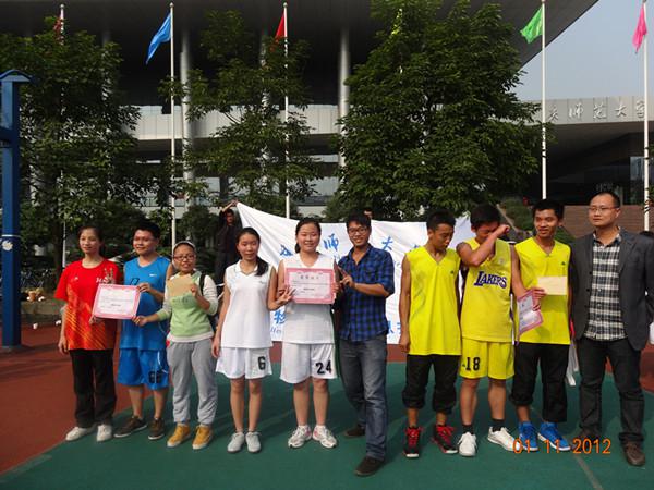 篮球场打响,比赛的三个队伍分别是2010级物理二班与2010级电子信息科学与技术班男子队、2010级物理一班与2012级物理二班男子队、2011级女子队与2010级女子队,他们的激战激动了在场的所有观众。赛后,进行了颁奖典礼,参与此次颁奖典礼的嘉宾有2012级辅导员王崇明老师、2010级辅导员邓娜老师,标志着2012年老虎机