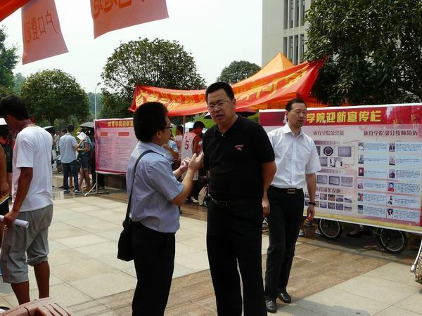 大学生的迎接,地点设置在了图书馆门前。今日的迎新工作由全体物电老虎机