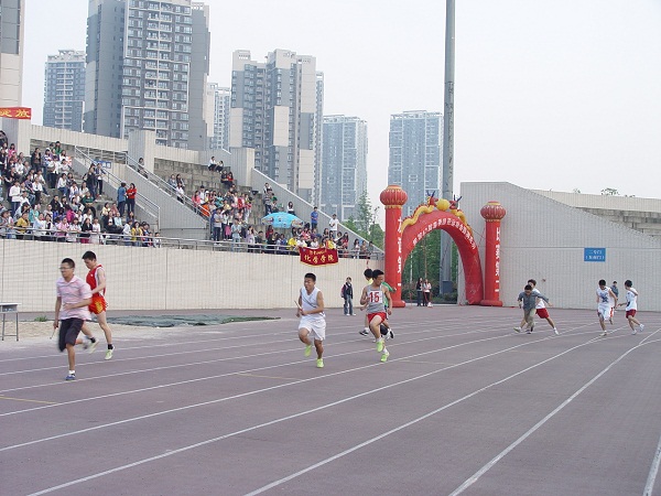 的看台上早早的坐满了人,等待着奇迹的发生,力量的冲刺。在操场上,即将比赛的运动员们也精神抖擞,从容自得,为比赛服务的志愿者东奔西走,忙得不亦乐乎。