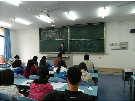 运动员出征仪式在弘德楼15204教室准时举行,到场人员有老虎机