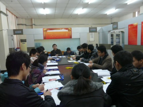 于12月16日中午1:30在院团总支·学生会学生工作办公室举行了此次大会的工作安排会议。党总支副书记冉久飞老师和团总支副书记李青松老师参加了此次会议,会议由李青松老师主持。