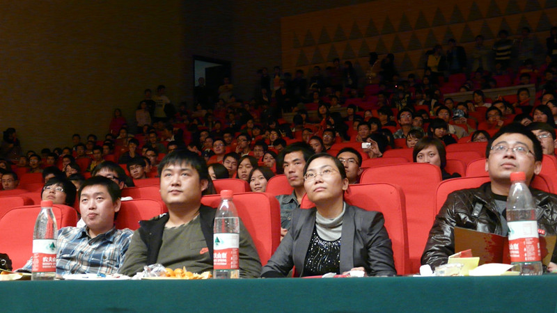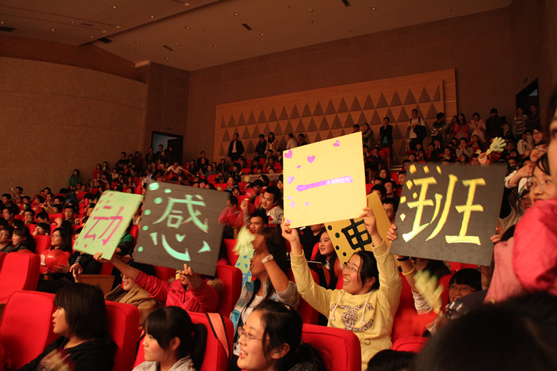 一舞《军魂》将同学们的思绪又带回了77109的挥汗如雨之中,一首《红旗飘飘》激荡起了同学们的中国心。现场温度在精彩的歌舞中不断升高,沸腾。一场《大学的糗事》将现场气氛点燃,更有《雷人舞》引爆全场,快乐男孩的青春与活力在整个音乐厅里弥漫,荡漾开去。同时晚会期间还穿插了现场抽奖活动,趣味十足,嘉宾们也在这沸腾的氛围中慢慢融化。最后,可爱的学长学姐在T台上展示了院学生会另类的风采,high翻全场。今夜注定不眠,今夜尽情high翻。