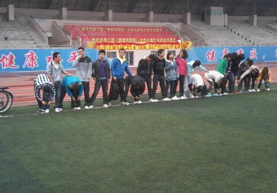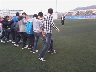 主持人陈芳和陆海峰幽默的自我介绍拉开了团会的序幕,接着介绍了来宾——蒋小平老师及2011级物理学二班和电子班的班委。接下来进行活动的第一项——两人三足。共有四组,每组男女均匀分配,两个回合,第四组胜出,接下来由获胜队和到场嘉宾pk,蒋小平老师也踊跃地加入活动,更加带动了同学们的积极性。接下来进行含糖说真言,首先主持人邀请蒋小平老师说出了自己的箴言:“人是要有点精神的。”这句话使处于迷茫中的同学们感触很深,接着是班长陆海峰说出了要坚持自己最初的梦想,还让嘉宾点名叫班上的同学大声说出自己的箴言,中途,久违的冉久飞书记在百忙之中抽空来观看大家的活动,虽然时间很短,但他的话将永远刻在同学们的心中——每个人都是一只雏鸟,要爱自己,越多越好。这个游戏让很少露面的一些同学说出了自己的心声,同时含着糖说箴言也让整个活动现场进入高潮,同学们在游戏中也收获了很多。接着就是夹气球游戏了,在刚才的分组下,两两组合,背靠背夹着气球,这是个考验同学们默契的游戏,要积极配合才能快速的完成。最后就是传气球游戏,同学们围成了一个圈,气球从蒋老师那儿传出,主持人闭上眼睛,然后叫停,拿到气球的同学表演节目,这样班上内向的同学也展现了自己的才艺,无论是唱歌还是讲笑话,或是跆拳道都让同学们很开心。在大家的不舍下,主持人宣布了活动结束。