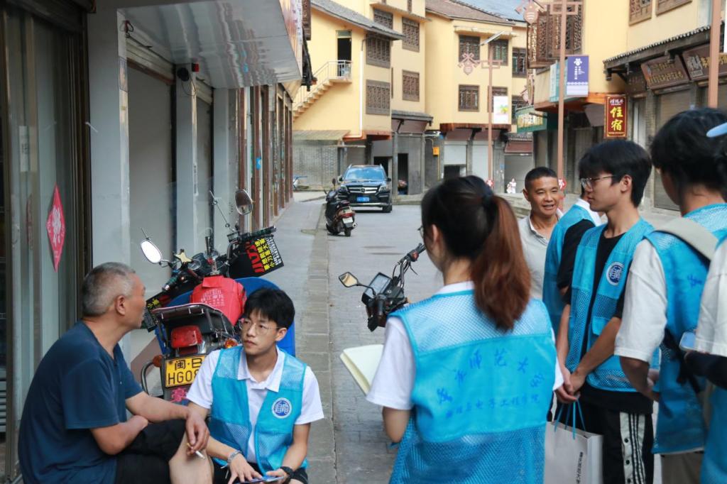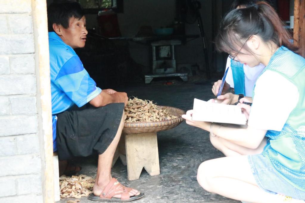 图为志愿者向村民了解近年来生活发展基本情况。 彭靖杰 摄