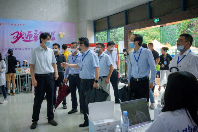 党委书记杨云、副院长余鹏(主持工作)、党委副书记曾艳到迎新点看望2022级新生和迎新志愿者,他们仔细了解了2022级新生基本情况,为现场志愿者们送上关切,并叮嘱要严格遵守疫情防控相关规定,做好防护措施。