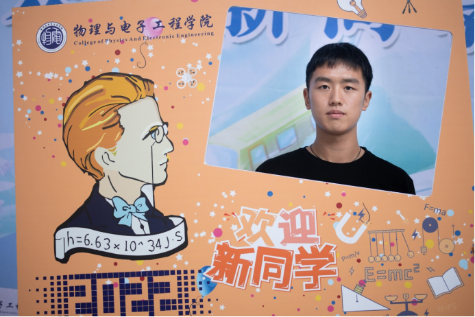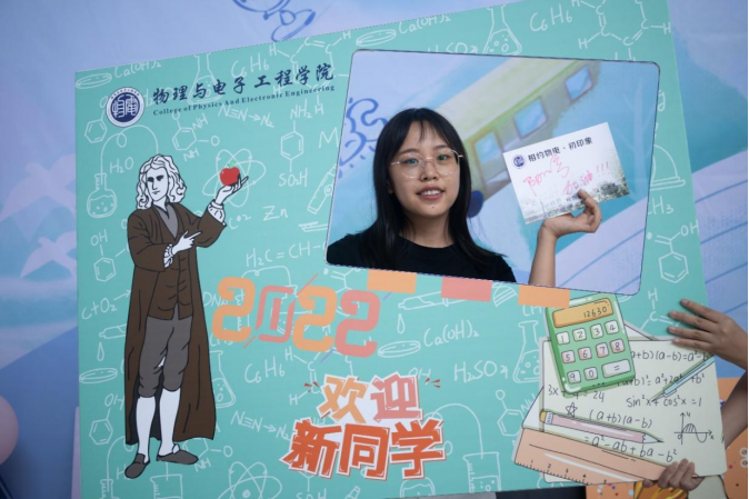 迎新点处,设置有特色迎新活动《相约物电·初印象》明信片合影墙。新生可以在明信片上书写对自己的期望、对大学生活的憧憬,在合影墙前用镜头记录下他们与物电老虎机