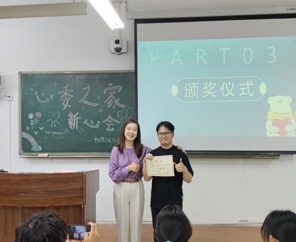 图为赵和平老师为心理委员颁奖