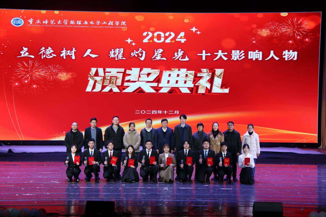 本次“立德树人·耀灼星光”十大影响人物颁奖典礼暨文艺汇演的成功举行为全院同学留下美好的回忆,激励物电学子爱校爱院、踔厉奋发,2025年踏上新征程!