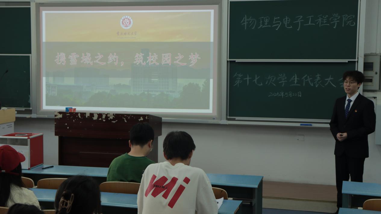 在弘德楼召开第十七次学生代表大会暨2025-2026学年分团委·学生会主席团候选人竞选大会。本次竞选共有4名候选人,全院各年级、各专业70名学生代表参会,辅导员马梓茂老师作为嘉宾出席。