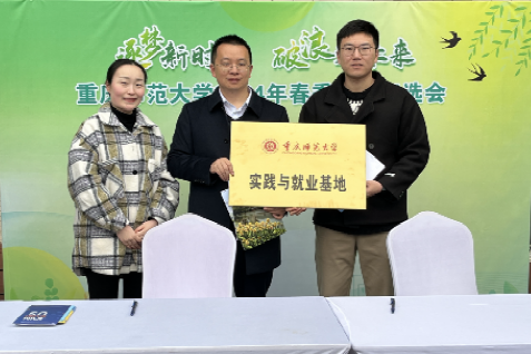 与国汽智控(重庆)科技有限公司在双选会现场签订实践与就业基地协议。