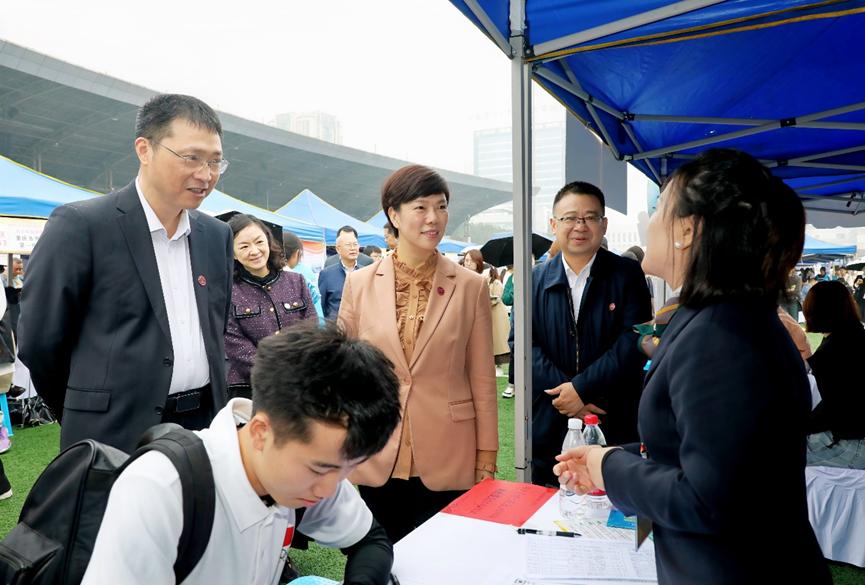 党委书记张艳,党委副书记、校长王国胤等在家校领导亲临双选会现场指导工作,向用人单位介绍了老虎机
