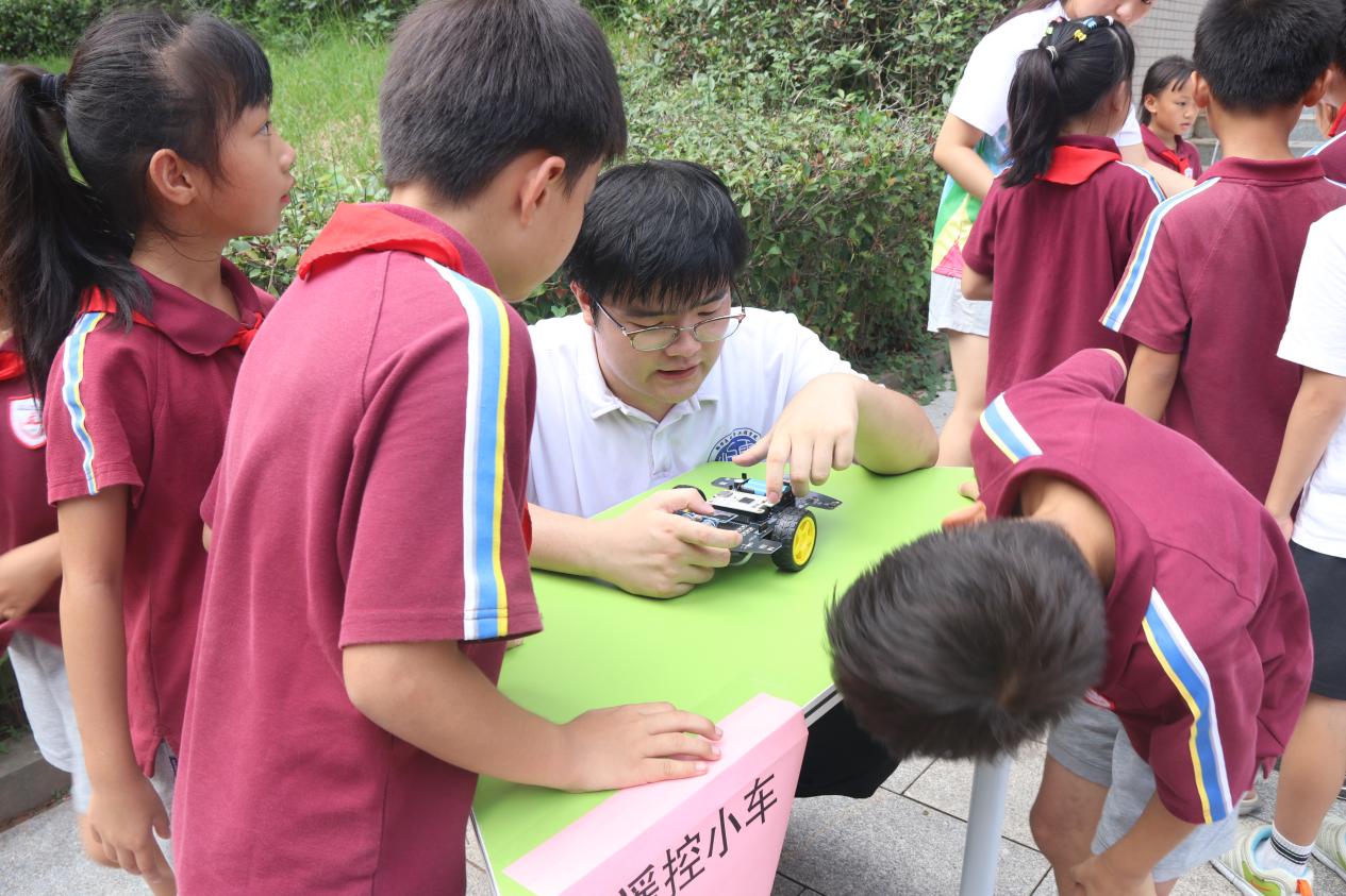 讲座结束后,小学生在志愿者引导下有序进入科普游园环节。老虎机