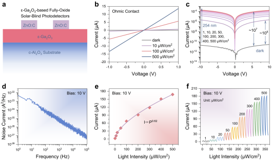 宽禁带半导体材料与器件团队利用传统宽禁带半导体(ZnO)开发出新型透明导电薄膜,并将其作为电极材料研制出高性能Ga2O3基日盲深紫外光电探测器。相关研究成果以老虎机