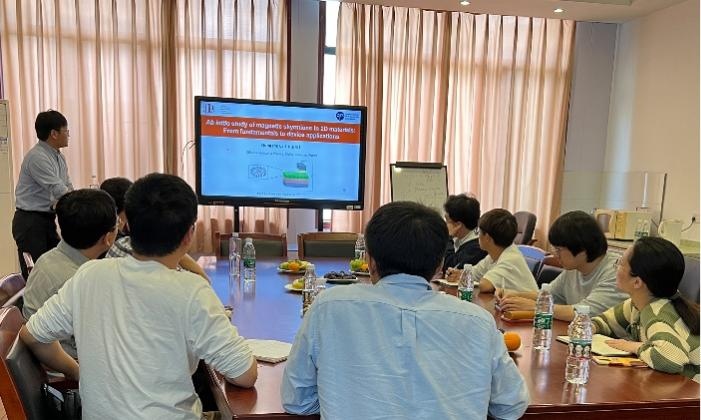 与师生开展学术交流,并作题为“二维材料中Dzyaloshinskii-Moriya相互作用和磁斯格明子的第一性原理研究”的学术讲座。