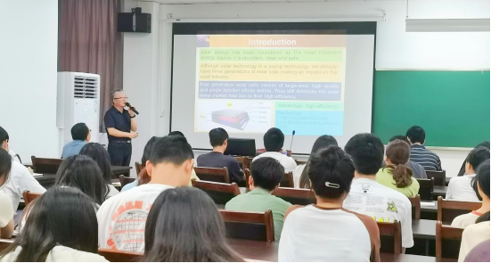 孟立建教授在报告中指出,染料敏化太阳能电池因成本低、工艺技术相对简单,在大面积工业化生产中具有较大的优势,同时所有原材料和生产工艺都是无毒、无污染,部分材料可以得到充分的回收,对保护人类环境具有重要意义。该电池通常以低成本的纳米二氧化钛和光敏染料为主要原料,但纳米二氧化钛的制备和改进是亟待解决的问题。孟立建教授团队利用磁控溅射方法制备氧化钛纳米棒阵列,并对纳米棒长度、粗线、阻挡层厚度等进行调控,得到最佳的氧化钛纳米棒阵列,并将此作为光阳极,成功组装了染料敏化太阳能电池,通过调节纳米棒各项参数,深入探讨了其对太阳能电池光电转换效率的影响。