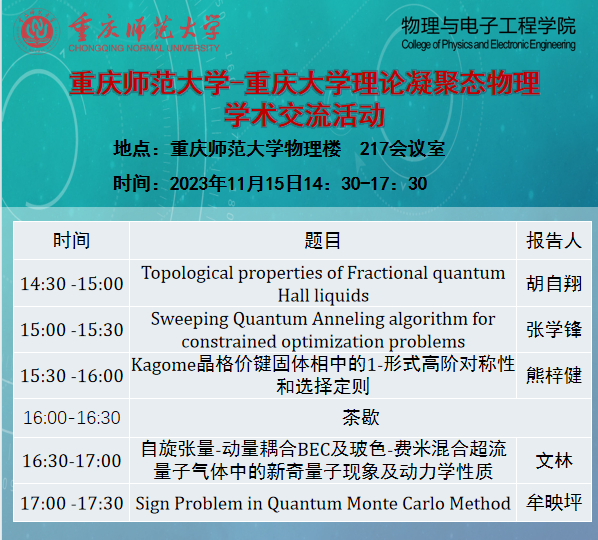 -重庆大学理论凝聚态物理学术交流活动”,探讨量子霍尔效应、强关联物理数值计算方法和冷原子物理等领域的发展动态和前沿热点问题,并分享交流各团队取得的最新研究成果。此次学术交流活动由老虎机