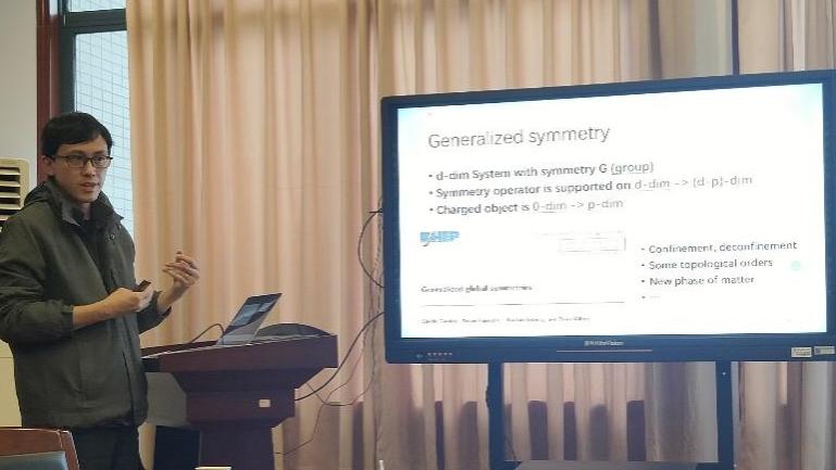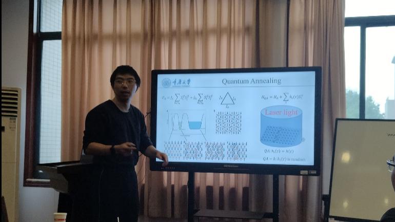 重庆大学胡自翔教授在报告中介绍了量子霍尔效应的发展历史和研究现状,系统总结了其课题组在该领域所取得的一系列研究成果,并分享了其在分数量子霍尔效应的拓扑性质研究方面取得的最新研究进展;重庆大学张学锋教授在报告中介绍了最近在针对复杂系统组合优化中拓扑类导致的各态无法历经问题所开发的新一类量子退火计算方法;重庆大学“弘深青年教师”熊梓健博士介绍了几何阻挫自旋模型的低能有效理论以及广义对称性,并展示了他在kagome晶格价键固体相的最新研究成果;老虎机